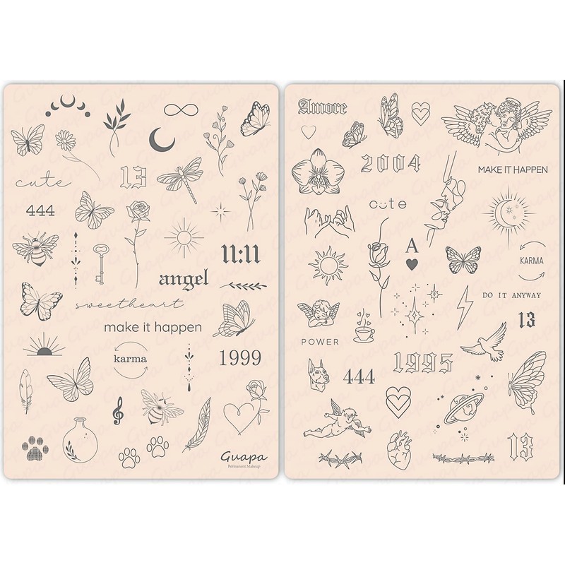 Fine line tattoo practice skins feature over 80 different stencil designs on the front and back of the skin.