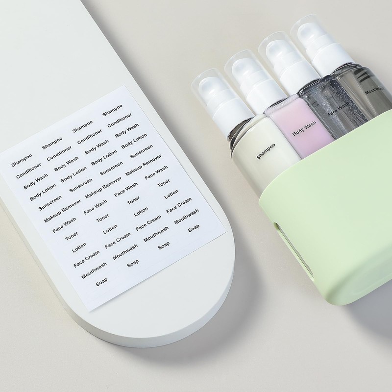 - Effortless Organization: The included label sheet allows you to tag each dispenser according to its content, making it easy to identify your toiletries at a glance. Say goodbye to mix-ups and hello to seamless travel.