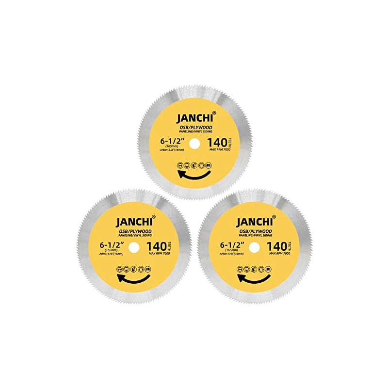 3Pack 6-1/2 Inch 140T Circular Saw Blade, Plywood, OSB, Paneling and Vinyl Siding Fast and Smooth Cutting Saw Blade 5/8 Inch Arbor.