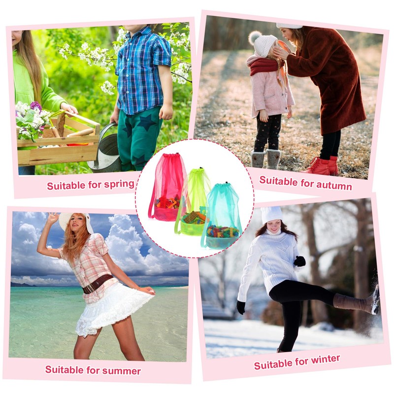 3Pack Large Mesh Beach Bag, Beach Toys Bag, Drawstring Sand Toy Bags for Swimming Beachs Pool, Vacation Essentials for Kids