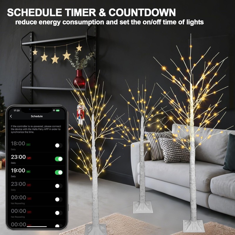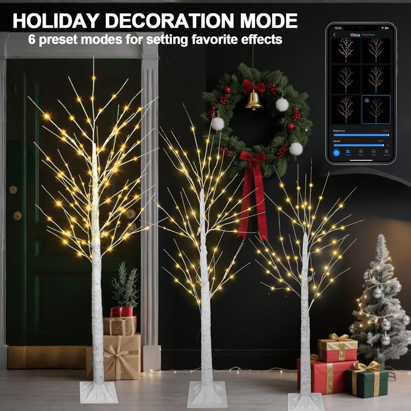 3PACK Lighted Birch Tree 4FT 5FT and 6FT, Smart White Christmas Tree with Lights with APP Home Decor, Warm White, Timing, Dimmer, Group Control, Music Sync, Holiday Decor Indoor/Outdoor Use