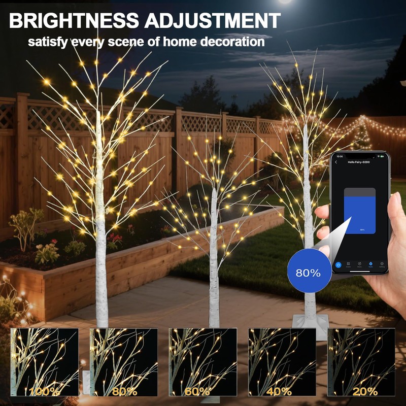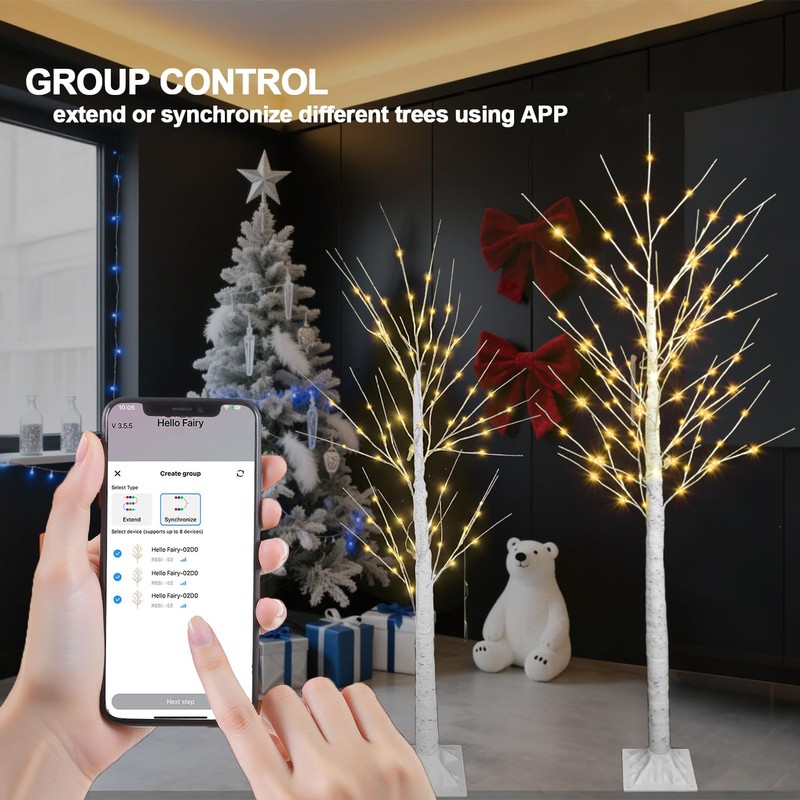 - GROUP CONTROL&MUSIC SYNC -- Use the app to manage your birch tree, expand or synchronize varied units. A virtual grouping of multiple trees in the house showcases stunning multi object Christmas lights.