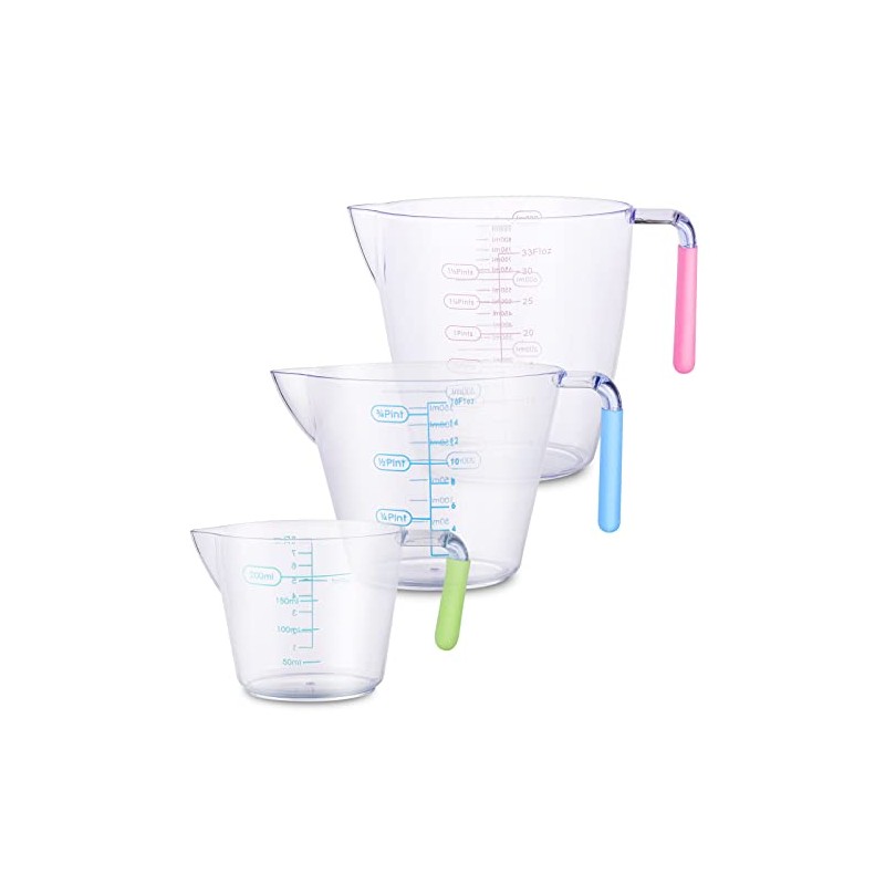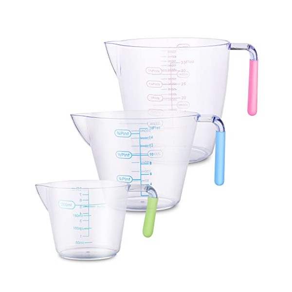 3Pack Plastic Measuring Jugs 1 Litre, Measuring Cups Plastic Jug for Baking, Jam Maker, Rice Measuring, Pouring jug, Accurate Scale 200ml/400ml/900ml