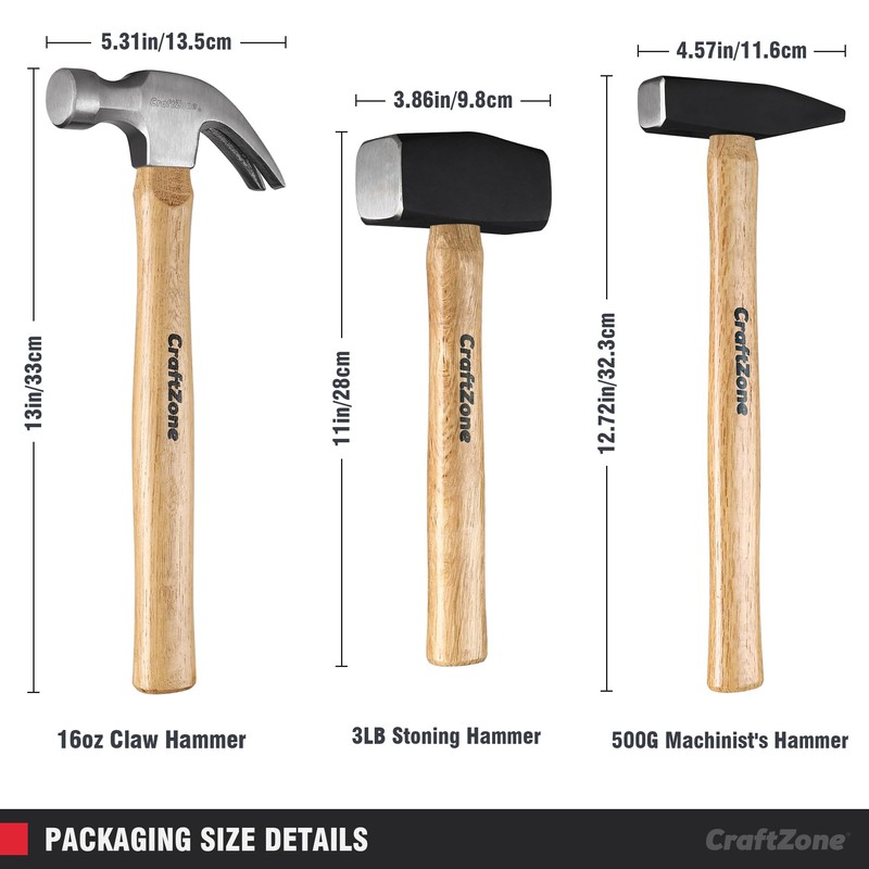 - 【Intuitive Use for Beginners】 - New users will appreciate the straightforward design of this 3-piece wooden handle hammer set, featuring labeled heads and comfortable grips for easy learning. The hammer set 3pcs for woodworking includes simple instructions for quick mastery, and as a hammer 3Pcs for DIY/Home/Craft, it’s tailored for intuitive use in DIY projects, home improvements, or craft hobbies—perfect for beginners seeking confidence.