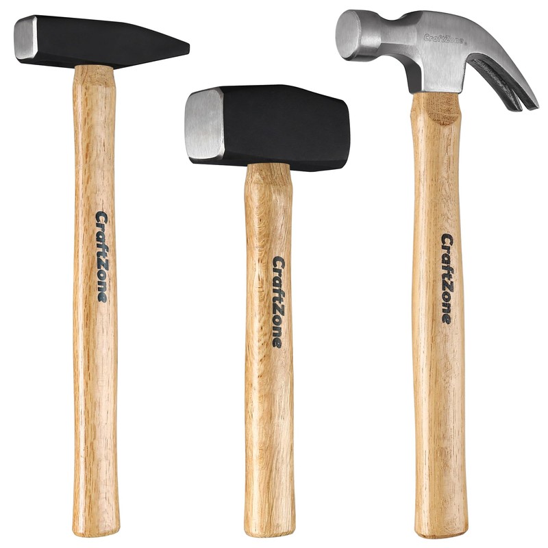 - 【Precision Balance Control】 - Each tool in the 3-piece wooden handle hammer set is meticulously weighted for superior balance, enhancing accuracy in woodworking tasks like nailing or framing. This hammer set 3pcs for woodworking provides effortless swings and reduced strain, while the hammer 3Pcs for DIY/Home/Craft maintains precise control for beginner-friendly DIY, home maintenance, or craft applications. Experience seamless handling with the claw, sledge, and engineers' hammers.