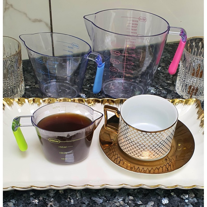 - ✅ Convenient to Use - Clear printed Measurements and Pouring Spout with soft Multi colour grip handles. Clear construction with easy-to-read measurement markings eliminates the need to fill, check and adjust. The handles of the measuring beaker makes it comfortable and labor-saving to hold, wonderful for both kids and adults; oval spout on the rim guarantees accuracy targeting without dripping, definitely no messy countertop.