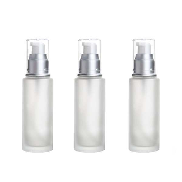 3PCS 30ML/1oz Empty Frosted Glass Lotion Pump Bottle Refillable Cosmetic Travel Toiletries Container Dispenser Vials Pot Jars for Cream Foundation Emulsion Essencial Oil