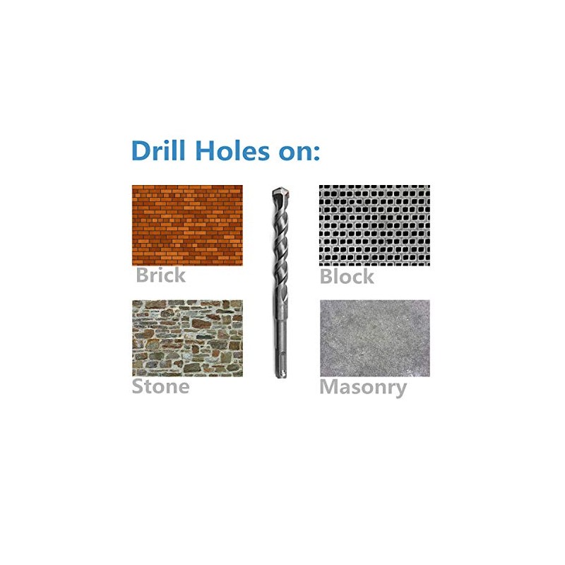 - Heavy Duty: SDS Plus Drill Bit for Rotary Hammers has Long-Lasting, Heavy-Duty, Tungsten Carbide Bits for EASY & Reliable drilling, screwing and fastening into Masonry, Concrete, Brick & Cinder Block.