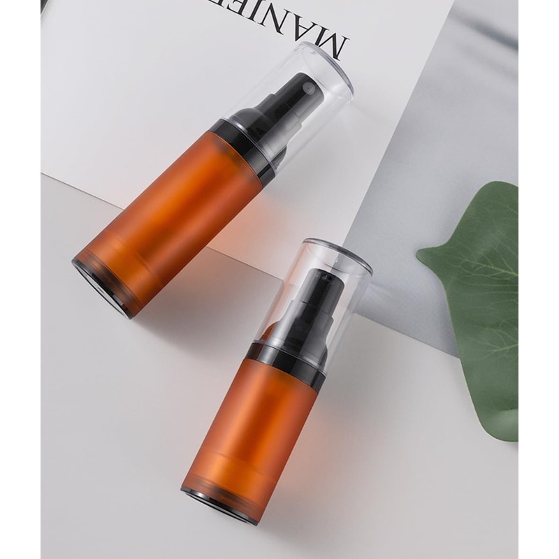 - Package Content:You will get 3 pieces of 50 ml/1.7 oz empty matte brown plastic lotion airless pump bottles