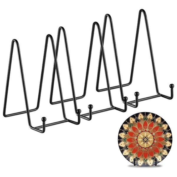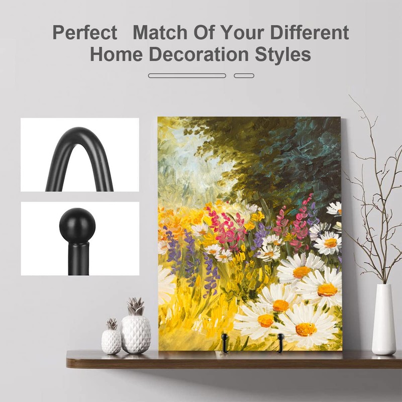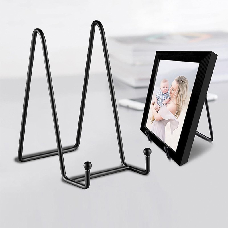 - [Simple and Solid Design] This display stand is made of matte black baking paint coating and forged iron structure, which is enough to accommodate decorative panels, painted tiles, commemorative plates, photo frames, postcards, plates, books, canvas paintings, tablets and works of art. Perfect for displaying your work! A simple and elegant display stand allows you to focus on your exhibits rather than display shelves.