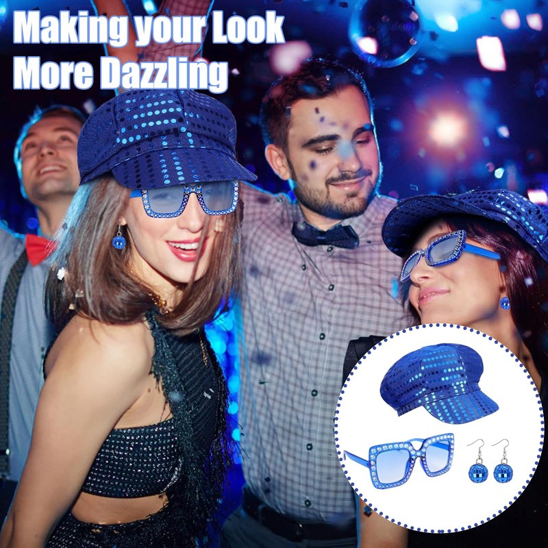 - 【Disco Hat Set】Our abba accessories set include 1 sequins hat, a pair of trendy disco sunglasses, and a pair of bling dangle earrings. Perfect for your disco themed party costume needs and your daily outfit needs, making your look more dazzling.