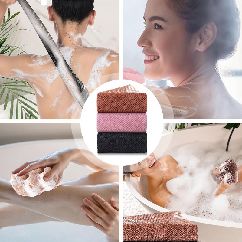 - 【Premium Materials】: Made from high-quality lightweight nylon fabric, these towels create a rich lather when used with shower gel, enhancing the cleansing process. The fine texture effectively removes dead skin cells and impurities while stimulating blood circulation, promoting healthy and smooth skin.
