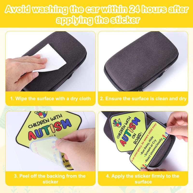 - How to Use: Wipe the surface with a dry cloth to ensure it's clean and dry. Peel off the backing and firmly apply the sticker. Avoid washing the car for 24 hours after application.
