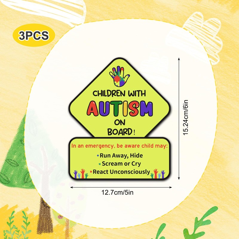 3pcs Autism Stickers for Cars, Child with Autism on Board Sticker Weather Resistant Autism Awareness Labels and Decals Emergency Alert Autistic Sign for Truck Window Bumper Wall (Style 1)
