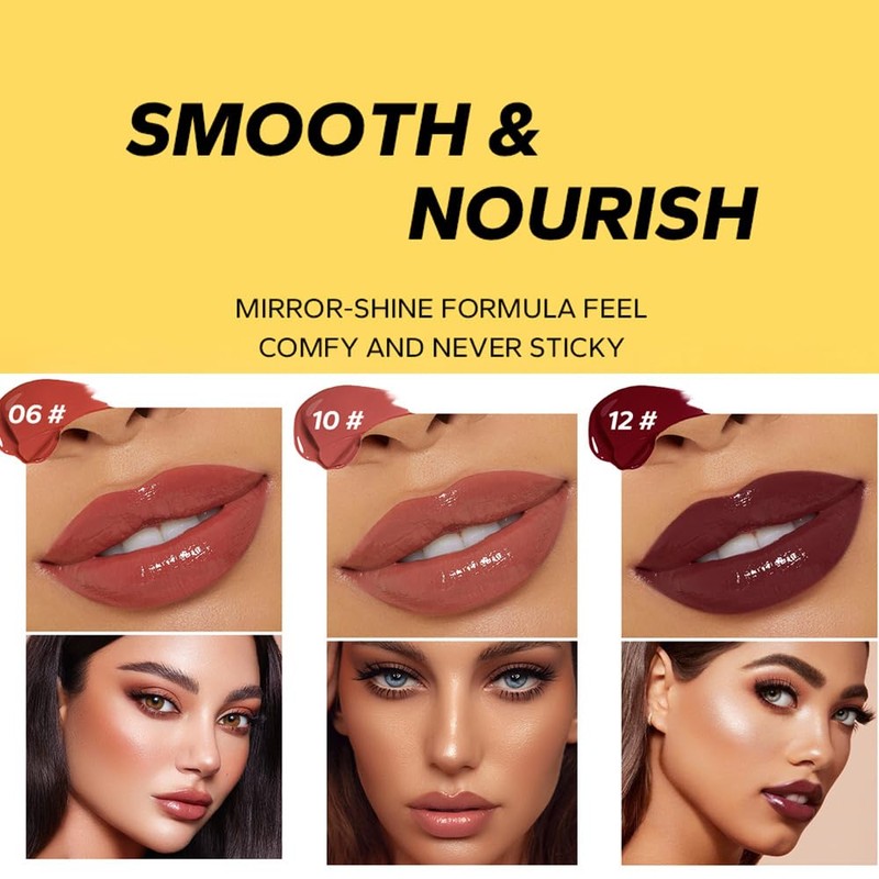 3PCS Beauty Glazed Juicy Lip Oil Slick Click - Plump, Moisturize, and Shine with Non-Sticky Lipstick - Lightweight, Buildable, Pigmented Vegan Lip Balm (6# 10# 12#)