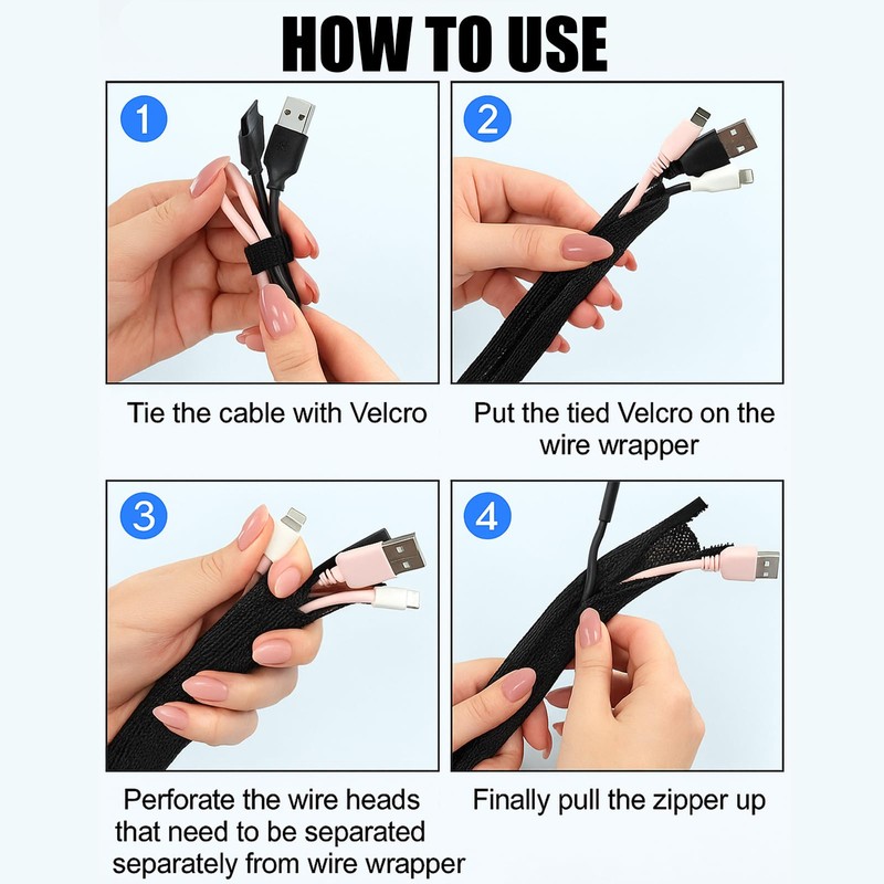 Self-Closing Cable Tidy Design: The braided cable sleeve naturally closes around wires, eliminating clutter and keeping cables securely organized. This cable sleeve can add or remove cords instantly—perfect for TVs, computers, and home entertainment systems. No tools or complicated steps required.