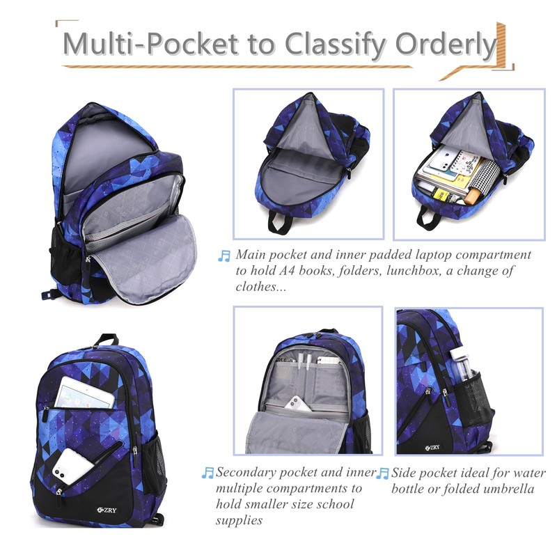 - 【Capacity to Load What You Need】 This boys Backpack features 1 * Main Pocket and inner padded tablet pouch, 3 * Front Pockets for commonly-used items, 2 * Side Mesh Pockets for water bottle or umbrella; Multiple pockets design to classify items systematically in the boys backpack, your child will find items much easier and quicker.
