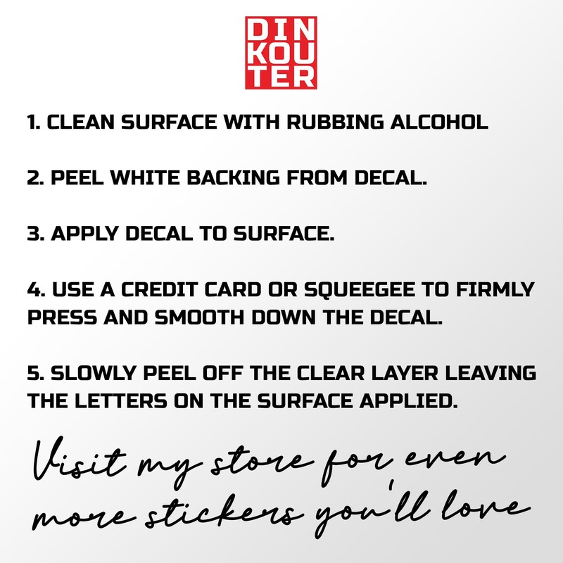 - Easy to Apply: DINKOUTER sticker is designed to be easy to apply, with no special tools or techniques USA required. Simply peel off the backing and apply it to any smooth surface. The sticker can also be easily removed without leaving any residue behind. MADE IN USA