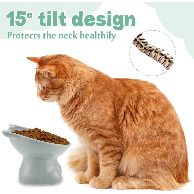 - NECK PROTECTION: The angled shape and raised edges of the elevated cat bowls provide a stress-free eating experience for cats, helping to reduce neck strain and helping to minimize neck fatigue and vomiting.