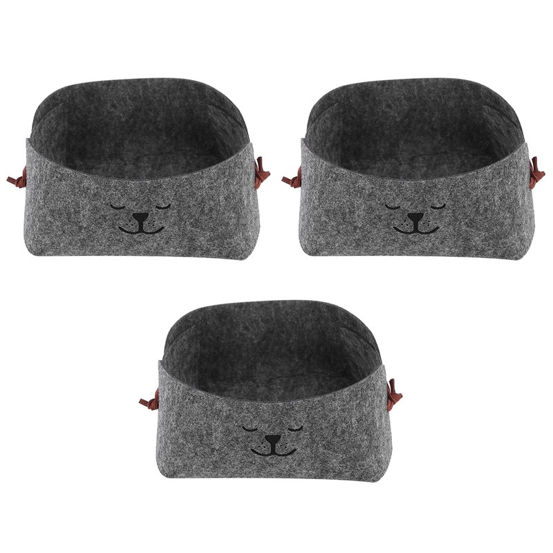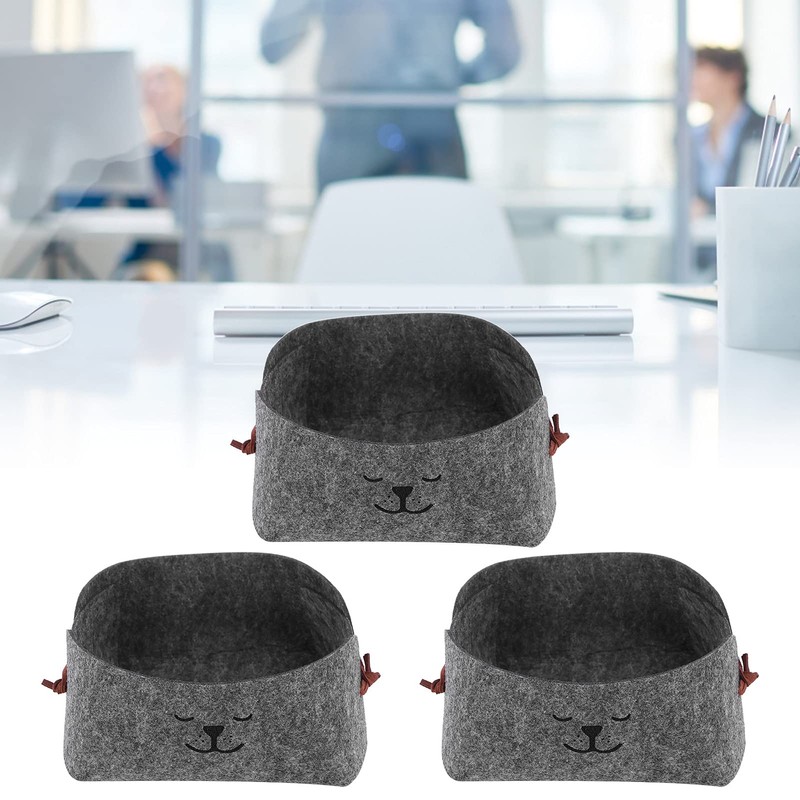 3Pcs Felt Small Box, Felt Baskets for Storage Foldable Felt Drawer Organizer Bins Cute Felt Boxes for Storage Toys Books Clothes Bedroom