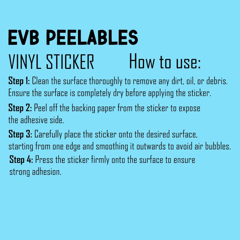 - WATERPROOF AND DURABLE VINYL: Made from waterproof EVB PEELABLES vinyl, this sticker is built to withstand different weather conditions, ensuring its long-lasting durability. Its waterproof features offer dependable protection against moisture and dust, making it a lasting source of inspiration.
