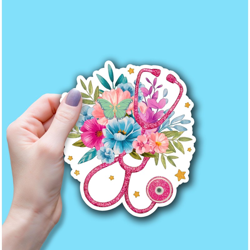 (3Pcs) Floral Stethoscope Sticker Nurse Sticker ER Healthcare Sticker Nursing Sticker Waterproof Vinyl Sticker Decals for Books Laptops Phone Water Bottles Tumbler Cup Kindle 3x2.5 Inch
