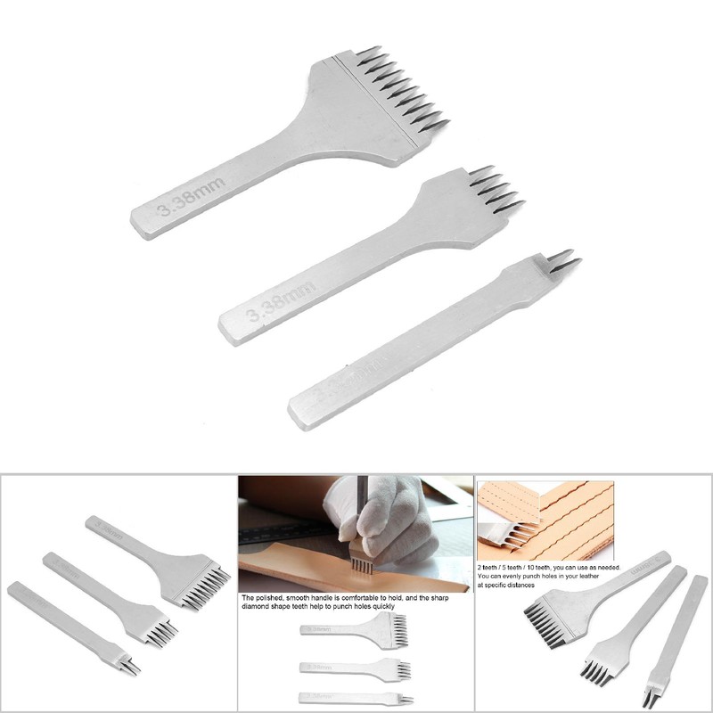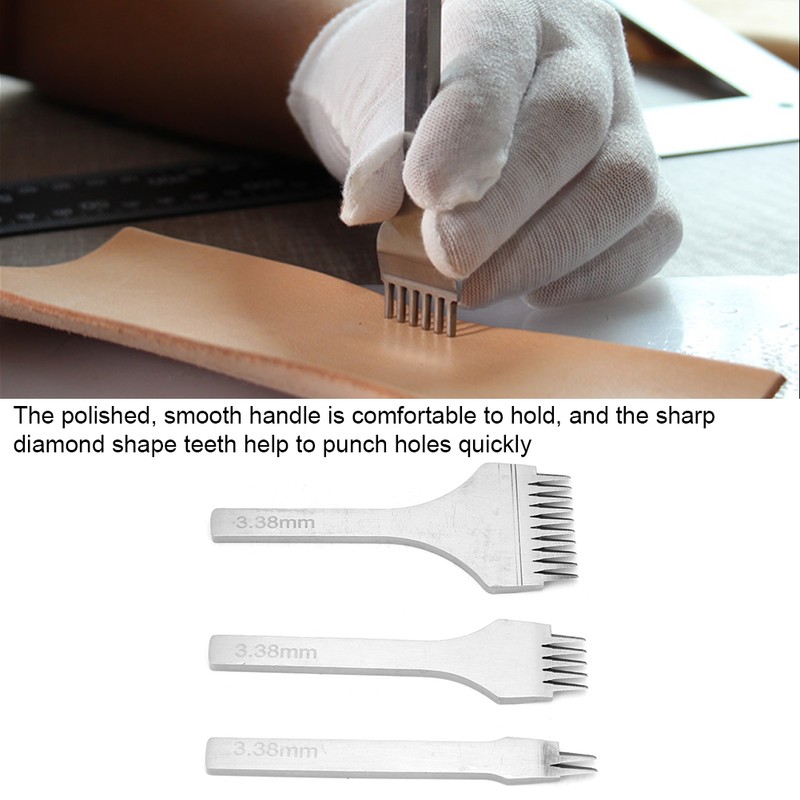 3pcs Handwork Leather PrO Stitch 2.7/3.0/3.38/3.85mm Leather Chisel Hole Punch Tool(3.38mm)