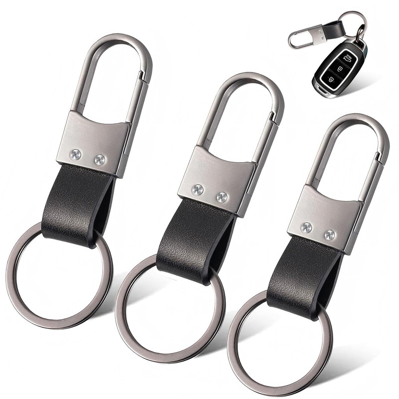 3Pcs Heavy Duty Metal Car Keychain Leather Car Keyring Clip, Samll Key Fob Holders with Zinc Alloy Buckle, Multifunctional Keyring Rings for Men Women