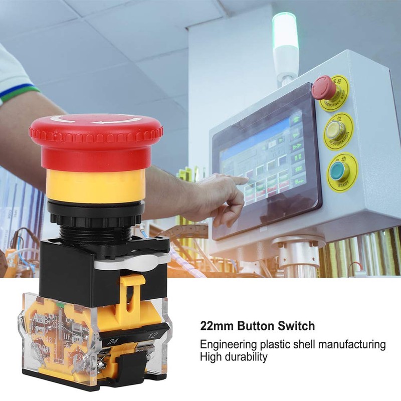3PCS Interruptor de botón de 22 mm Interruptor de botón de parada de emergencia Piezas industriales Ingeniería Plásticos