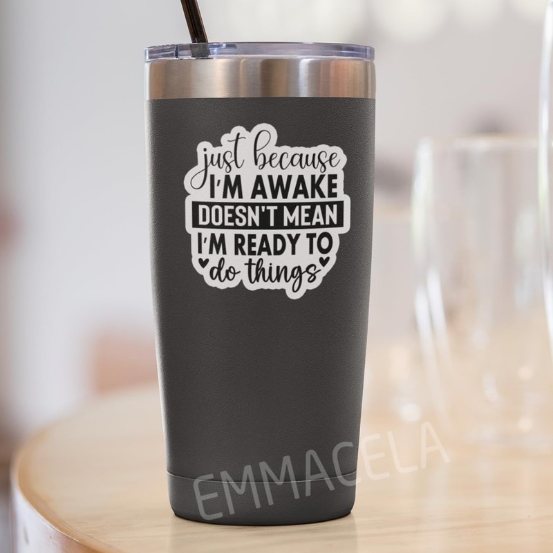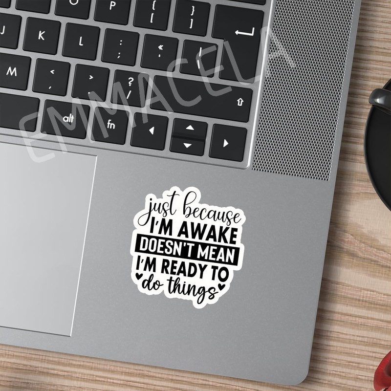 (3PCS) Just Because I'm Awake Doesn't Mean I'm Ready to Do Things Sticker, Funny Sarcastic Stickers - Waterproof Vinyl Decal for Laptop, Tumbler, Water Bottle, Scrapbook 3" x 2.9 "