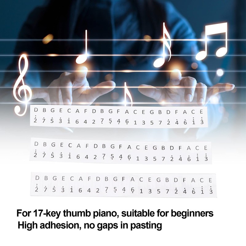 3Pcs Kalimba Thumb Piano Note Stickers,17 Keys Keys Stickers Kalimba Staff Labels Thumb Piano Button Musical Note Decoration for Beginners (White)