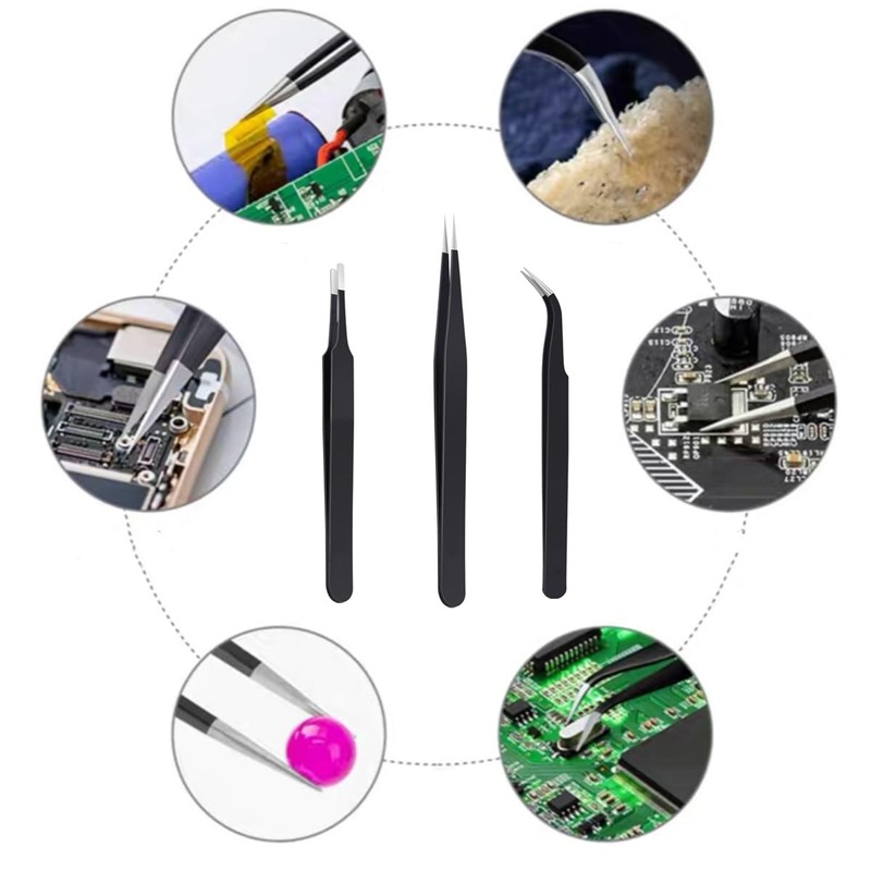 - 【ESD Safe Handles】 - These ESD Tweezers set with ESD (Surface Electrostatic Discharge) finish to protect the components and handles from the damaging effects of static.