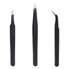 3Pcs Lash Tweezers, Stainless Steel Eyelash Extension Tweezers Straight and Curved Tip Eyelash Tweezers (Black)
