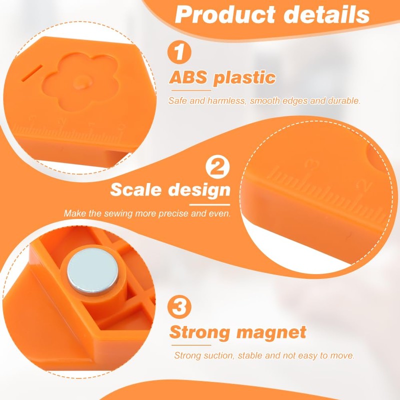 【PACKAGE CONTENT】You will receive 3pcs different color magnetic seam guides, includes orange, green and pink, each magnetic seam guide about 6x4x1cm/2.36x1.57x0.39inch(LxWxH), enough for your daily use and replacement.