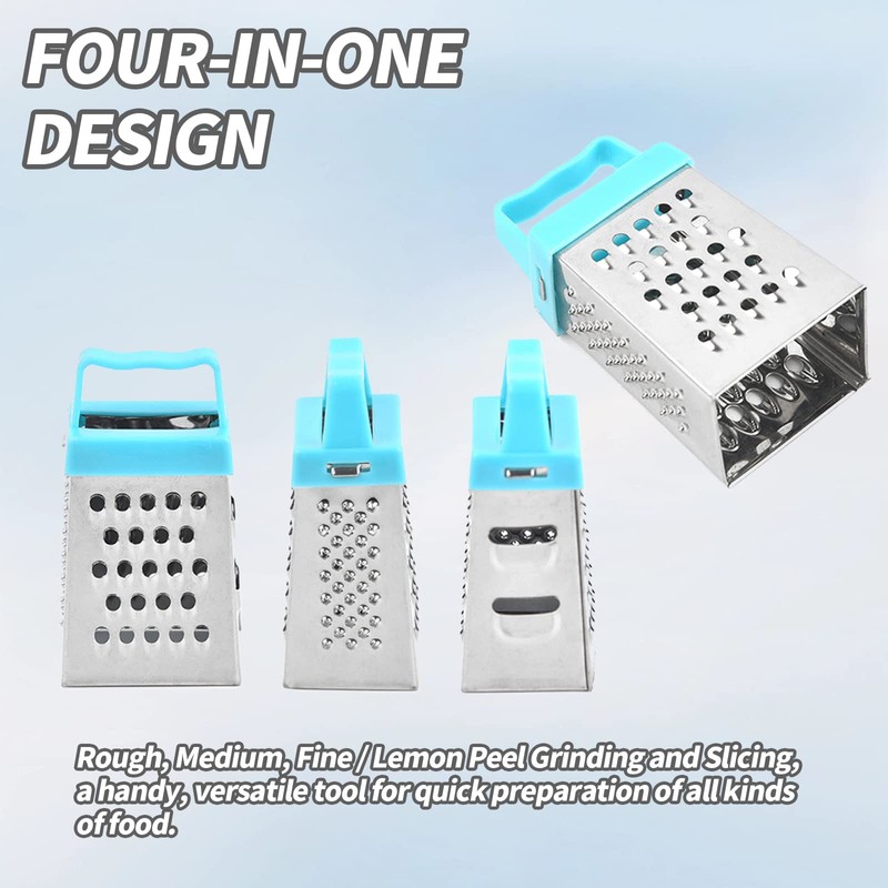 Upgrade your kitchen with our versatile mini box grater. It's a kitchen must-have for preparing ingredients with ease. The sharp stainless steel blades ensure efficient grating and slicing, resulting in cleanly grated and sliced food. Cleaning is a breeze as the grater is dishwasher safe. Its premium stainless steel construction guarantees resistance to rust and corrosion. The ergonomic handle provides a comfortable grip, and the compact size makes it easy to store. Don't miss out on this essential kitchen tool. Order our mini box grater now and enjoy hassle-free grating in your culinary adve