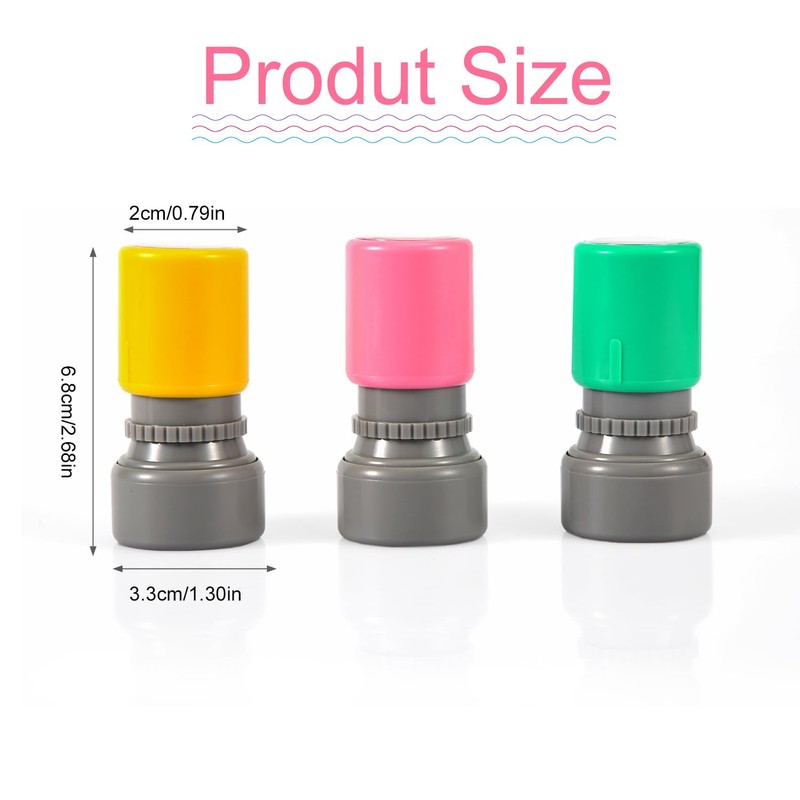 - Size Information: Our self ink stamp measures 6.8cm/2.68 inch long; the top is 2cm/0.79 inch in diameter and the bottom is 3.3cm/1.30 inch in diameter. The size is suitable for easy handholding.