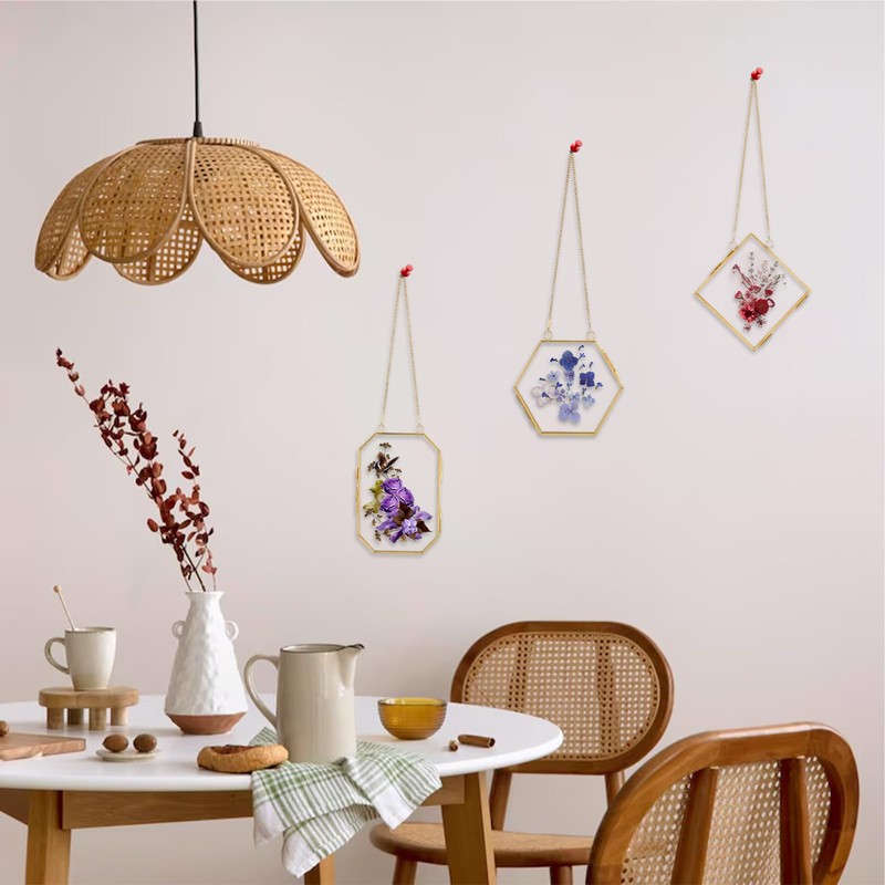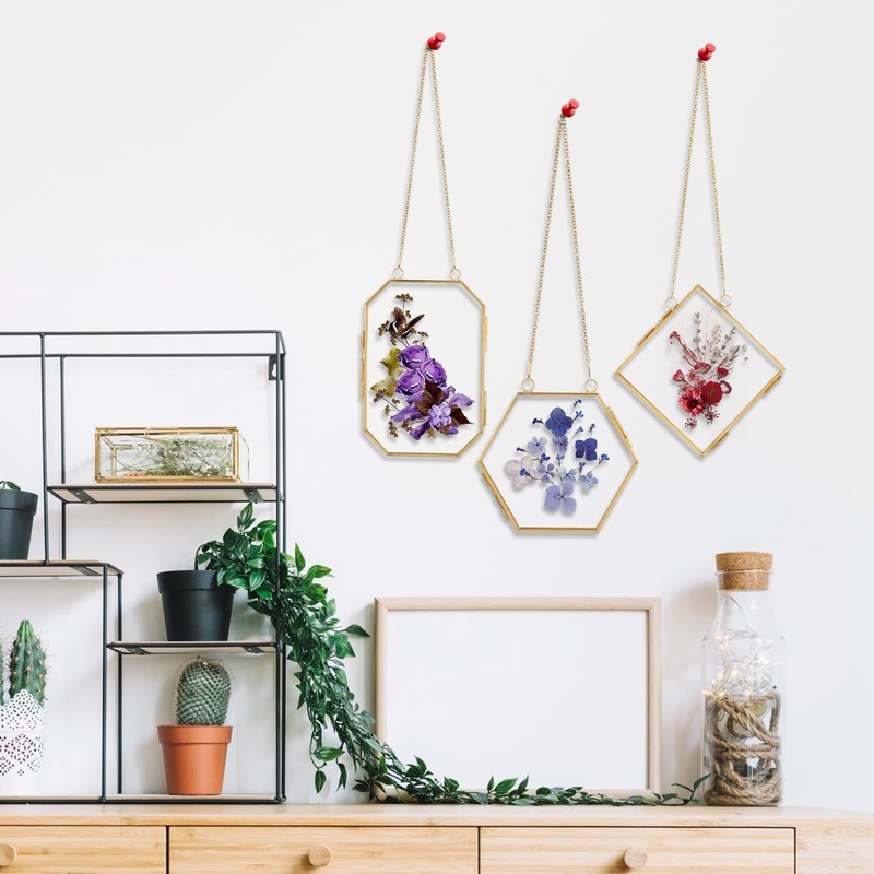 - 【Ideal Gift】These gold hanging glass picture frames can be given to your family or friends as birthday gifts, Christmas gifts, wedding gifts, Thanksgiving gifts, housewarming gifts, etc. You can also DIY your own pressed flower art and give flower press frame to your family.
