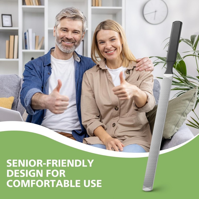 - Senior-freundliches Design für komfortable Verwendung: Nagelpflege sollte keine lästige Pflege sein, insbesondere für unsere geschätzten Senioren. Die Länge und die ergonomische Struktur dieser Zehennageldatei und der Ergonomischen Struktur minimieren den Bedarf an anstrengenden Handbewegungen. Der bequeme Griff ermöglicht einen sicheren Halt, so dass Senioren die Zehennägel ohne Beschwerden einfach polieren können. Es ist nicht nur ein Werkzeug.Es ist ein Begleiter bei der Aufrechterhaltung der Unabhängigkeit und des persönlichen Pflegevertrauens.