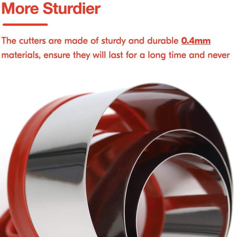 - The round cookie cutters are made of sturdy and durable 0.4mm materials, ensure they will last for a long time and you don't have to worry about your child bending them out of shape.
