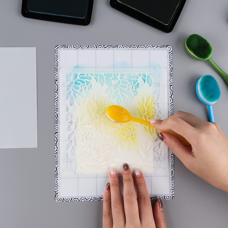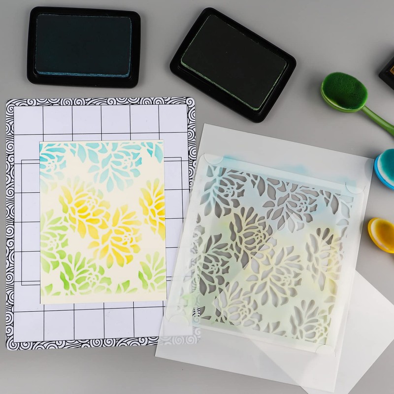 • [STICK AND STAMP MAT AND FIXED STAMP BLENDING TEMPLATE] --3Pcs/Set 2Pcs Stick and Stamp Mat 6.5x8.5inch 1Pcs Stick and Stamp Blending Buddy;Laser Cut Template 6.25x8.25inch Low Stcik Mat;Multi-Use Low Tack Mat;Designed to fit into stamping platform allows you to precisely position your image and create perfect impressions every time you stamp, enough size to make design you need.This mat can be used with your stamp positioner to hold your project in place while using large stamps.