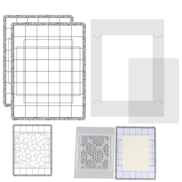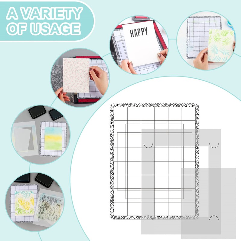 • [GRID FOR ALIGNMENT] -- Clear grid lines , which can help line up the stencils and keep them straight; In addition, it allows other blank side to be positioned and applied better.help with alignment.Guidelines for a standard size card, both horizontally and vertically