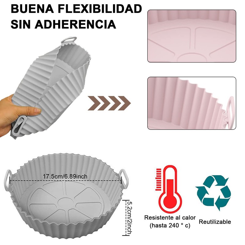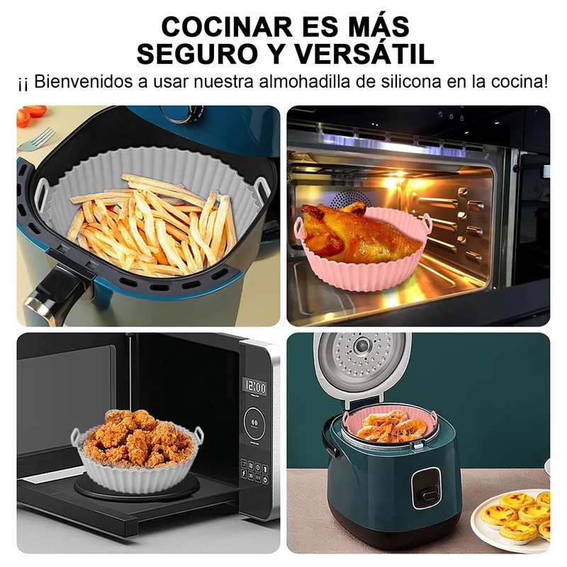 Molde de silicona para freidora de aire, son muy suaves y flexibles y se adaptan a la mayoría de las freidoras, manteniendo su freidora libre de residuos de alimentos, grasa y suciedad sin afectar la vida útil de su freidora.