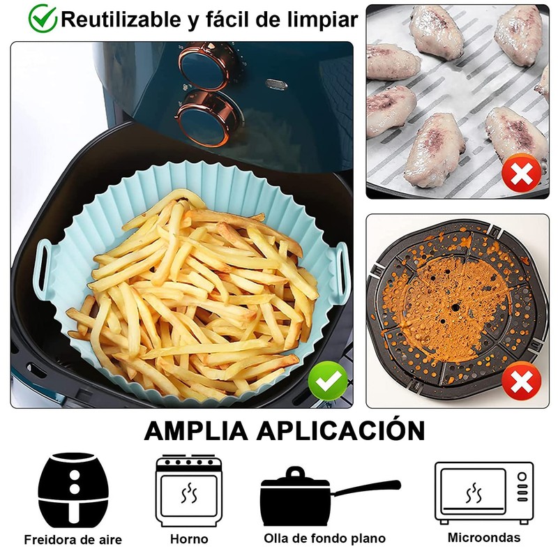 - 💌 Silicona para freidora de aire, impermeable, a prueba de aceite, antiadherente, 100% saludable, buena resistencia al calor. Mantiene su freidora de aire ordenada al evitar que los residuos de alimentos queden en utensilios de cocina difíciles de limpiar.