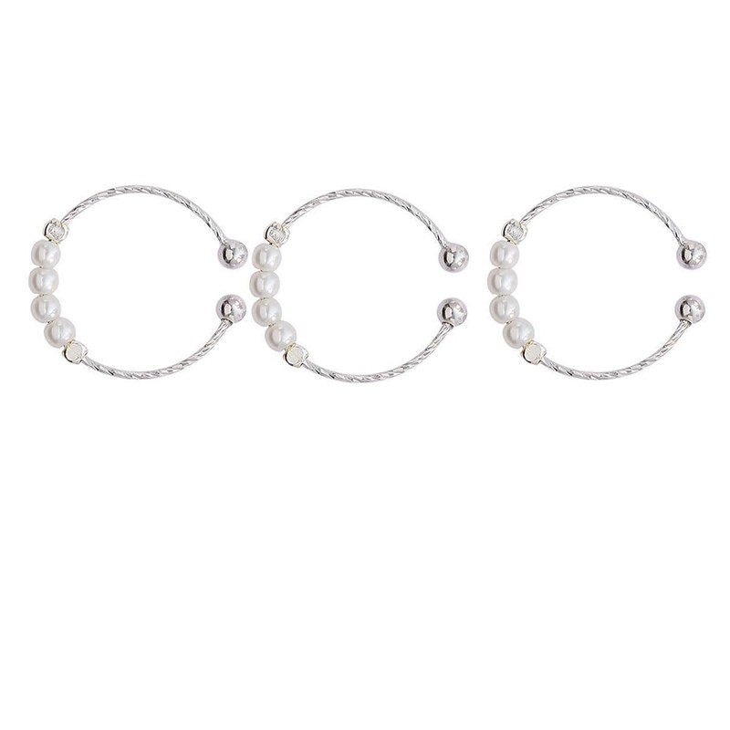 3Pcs Small Pearl Rings Set for Women,Dainty Stackable Beaded Rings Minimalistic Adjustable Elastic Ring,Retro Pearl Jewelry Accessories Holiday Gifts (B)