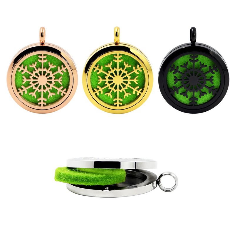 3Pcs Snowflake Aromatherapy Essential Oil Diffuser Pendant Stainless Steel Necklace Pendant with 21 Refill Pads