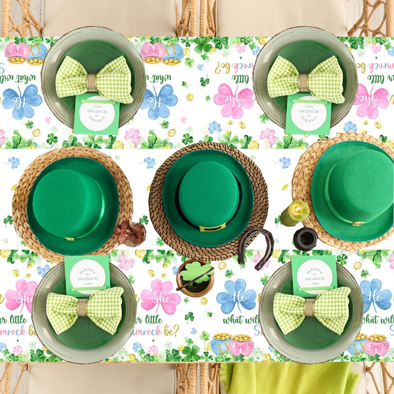 - Multi purpose - Our gender reveal tablecloths are suitable for St. Patrick's party decorations, St. Patrick's baby showers, Irish clover holiday decorations, What Will Our Little Shamrock Be themes, boy or girl baby shower decorations, spring parties, family gatherings, and can create a dreamy and fresh atmosphere.