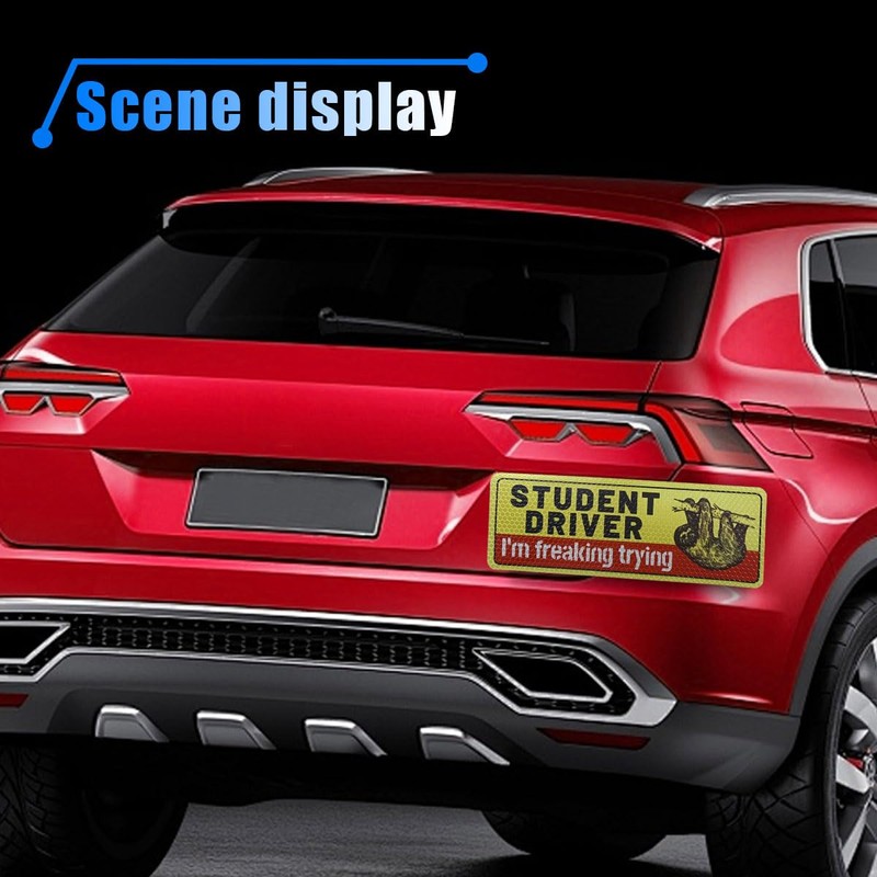 - 【Humorous and Effective Design】:This student driver car magnet sticker is printed with "student driving", "I'm freaking trying" and other interesting warning information, in a humorous way to remind others that there is a new driver on the road, others will be tolerant to provide you with more space, but also reduce the tension of the novice driver when driving.