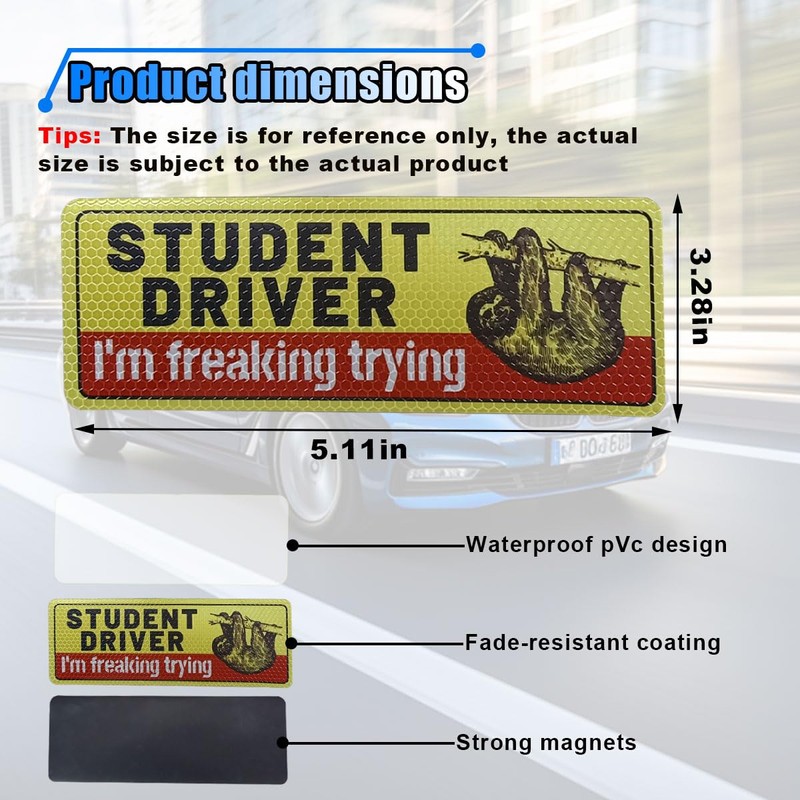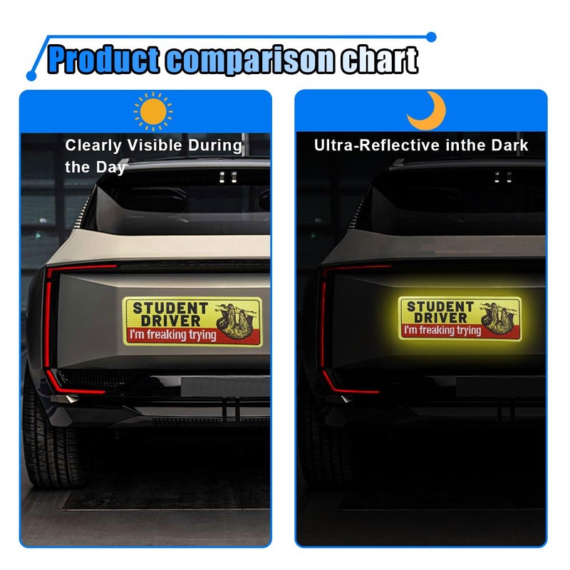 These student driver magnet stickers are made of high-quality PVC and magnet materials and are reflective, providing maximum visibility for driving at night.
