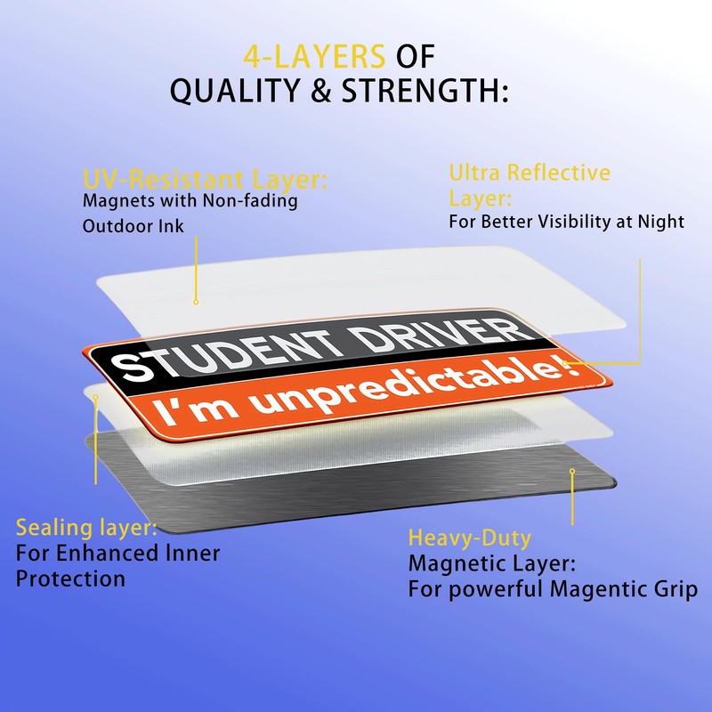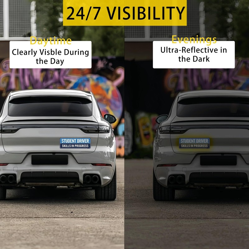 - IMPROVED NIGHT VISIBILITY: Crafted from highly reflective and weather-resistant materials, our student driver magnets guarantee that you can be seen during the night and in adverse weather circumstances, enhancing safety for new drivers.