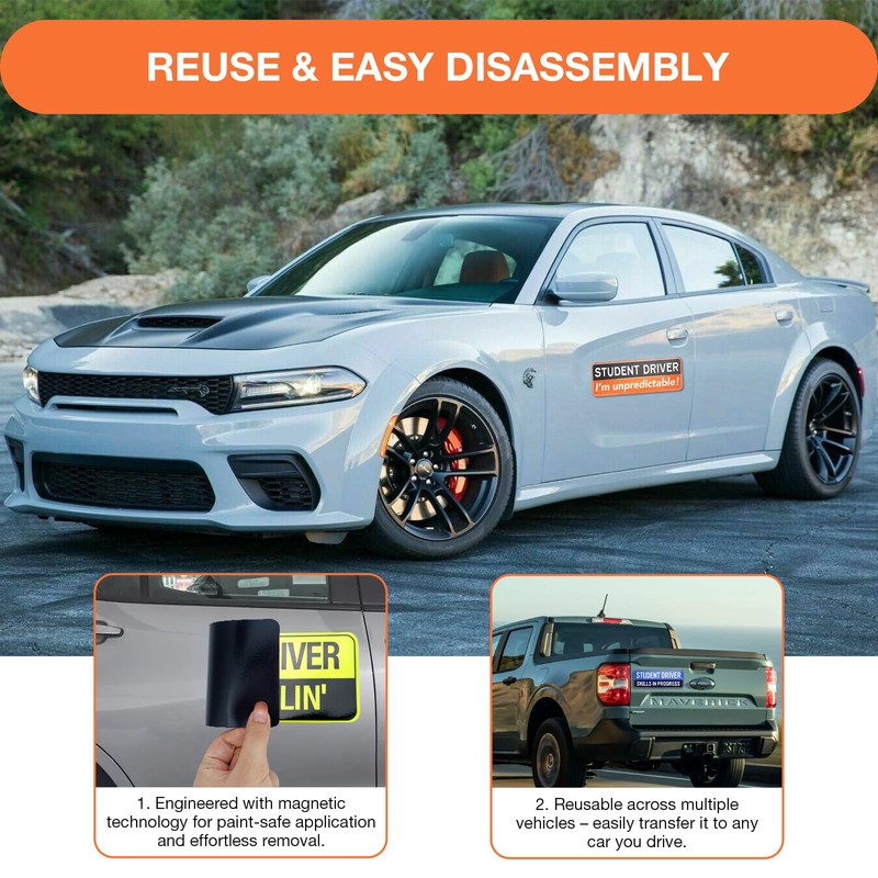 - Great Gift for New Drivers – A practical and thoughtful present for driving students, teens with permits, or first-time car owners. Includes 3 magnetic stickers + reliable customer support.